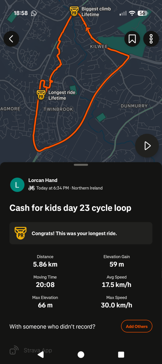 Day 28 done, what a fabulous opportunity to get to do this for cash for kids. Thank you to everyone who sponsored us along our journey.